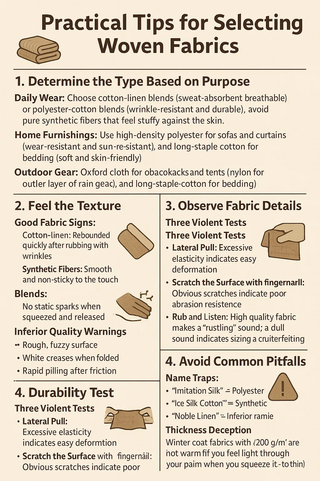 Domum supellectilis: Utere polyester summus densitatis pro lectos et cortinas (repugnantes et solis resistentes), et bombacio stapulae diuturnae ad straturam (mollis et pellis amicalis).