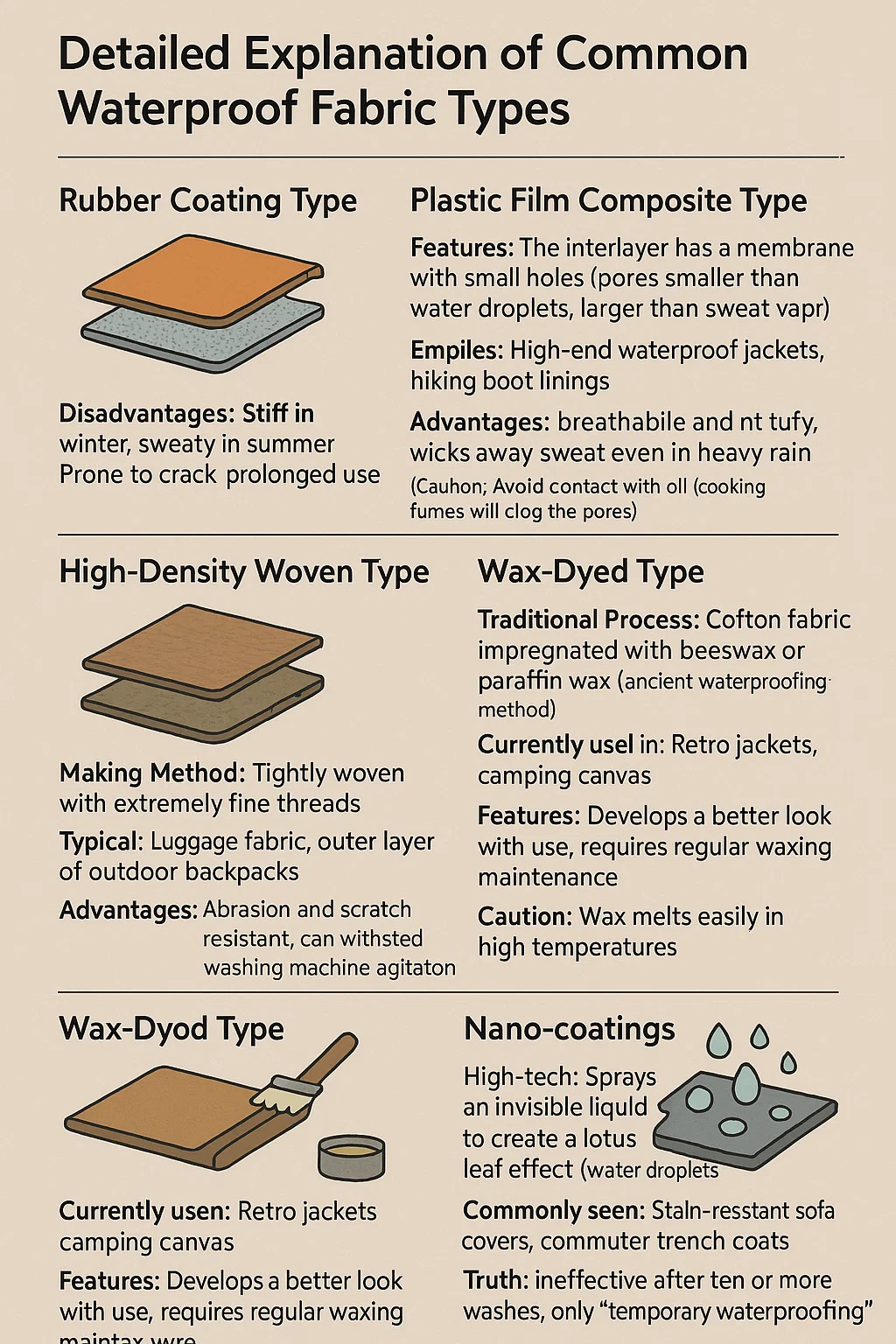 Processus Traditionalis: fabricae Cottonis cera vel paraffin cera impraegnatur (vetus methodus waterproofing).