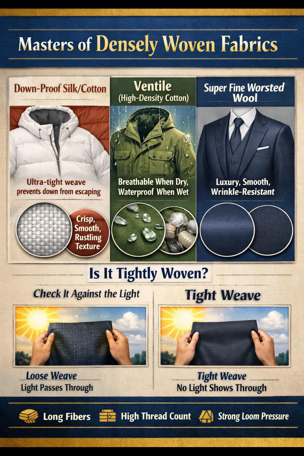 Cum fit mundi dense textura non est propugnator singularis, absolutus, ut definitio "densae" dependet sive est ad waterproofing, windproofing, sive ad lenitatem ultimam.